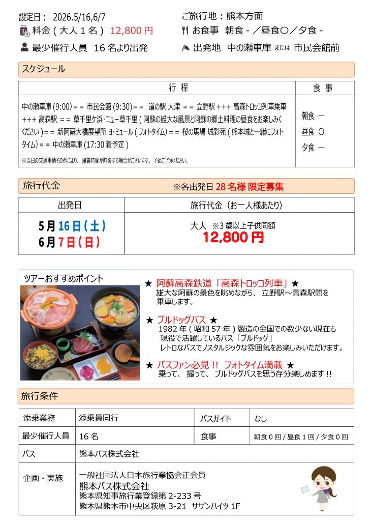 レトロ「ブルドッグバス」&「高森トロッコ列車」に乗って 阿蘇大満喫日帰りツアー