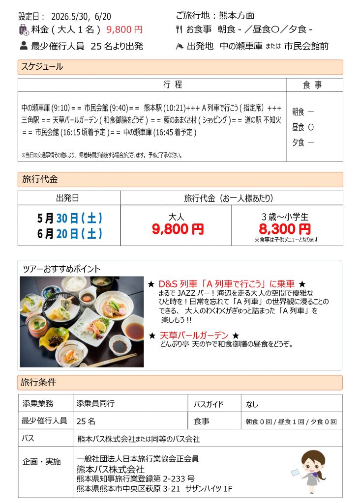 特急「A列車で行こう」に乗車 天草満喫日帰りツアー