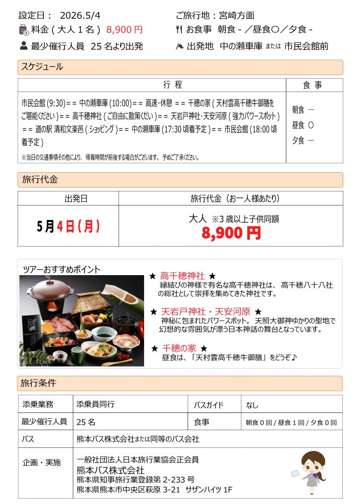 【春旅日帰りツアー】神話の里「高千穂」最強のパワースポット巡り